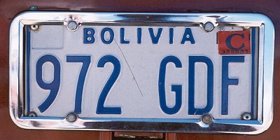 The numberplate of our Bolivian bus.