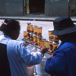 Strange peach based drinks being sold in La Paz, we thought it