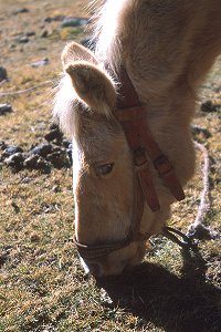 Bio, one of our 15 horses enjoys a snack during a rest stop on
